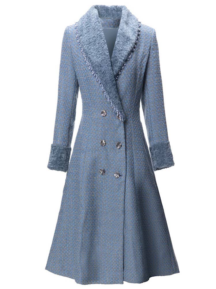 This elegant long coat is crafted from textured tweed and elevated with exquisite hand-beaded detailing that adds depth, shine, and refined artistry. The double-breasted front enhances its structured silhouette, while the long sleeves and full-length cut provide warmth and sophistication for the cooler seasons. Carefully placed beadwork creates a luxurious visual effect without overpowering the classic tweed texture. The tailored shape flatters the body, offering both comfort and a high-end appearance suitable for daily wear or special occasions. Perfect for autumn and winter, this coat blends craftsmanship, style, and practicality into a standout wardrobe piece.